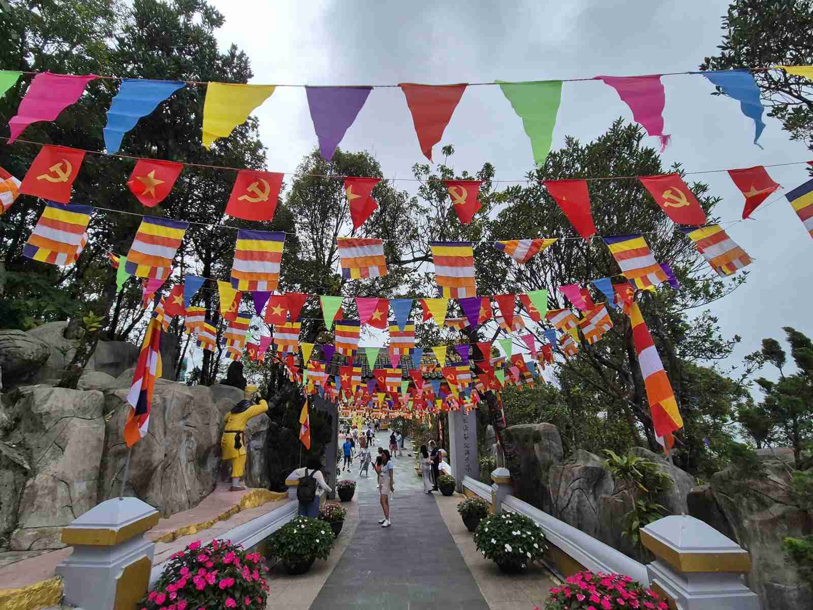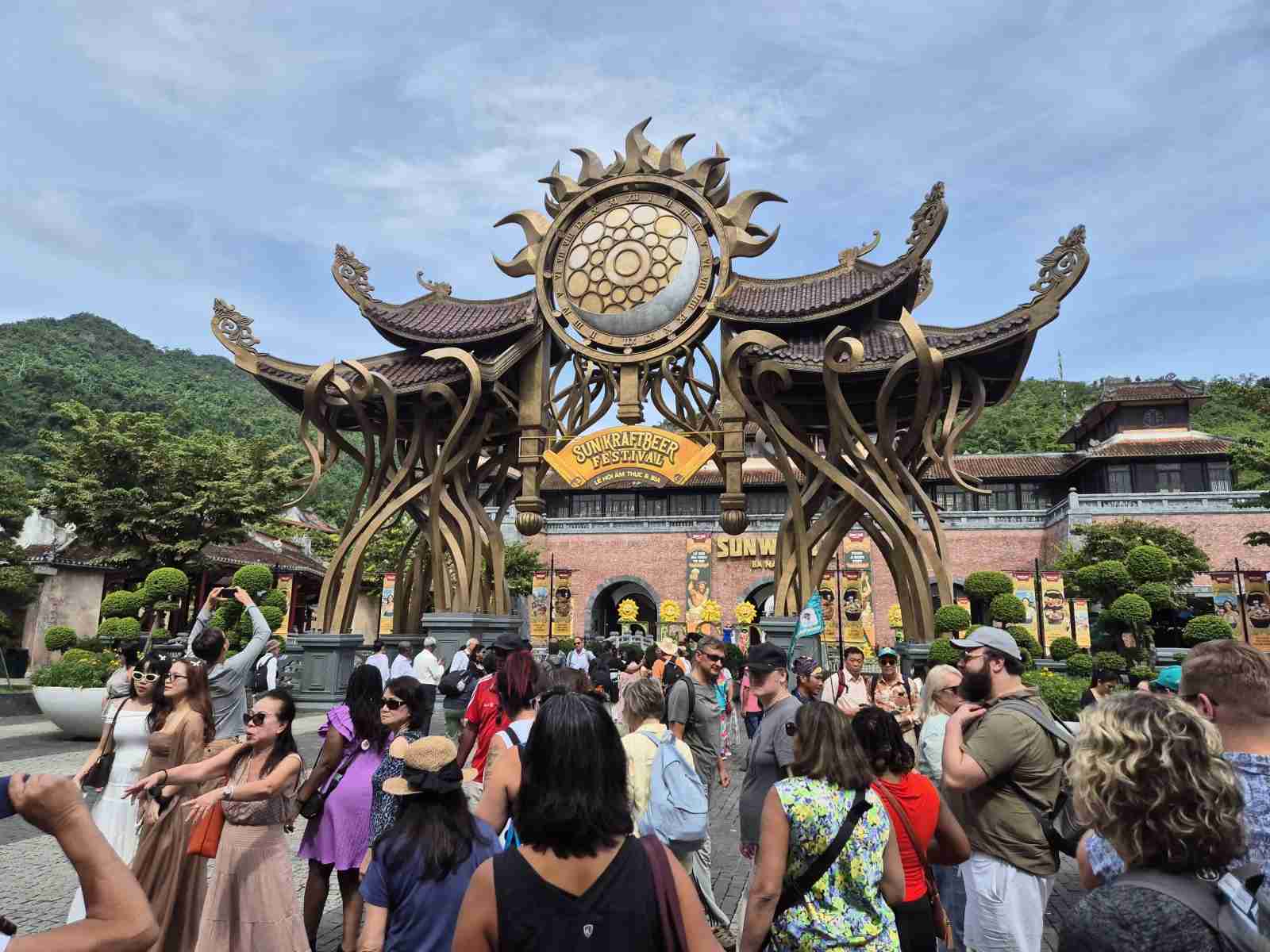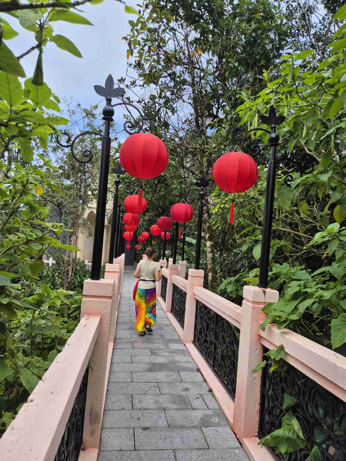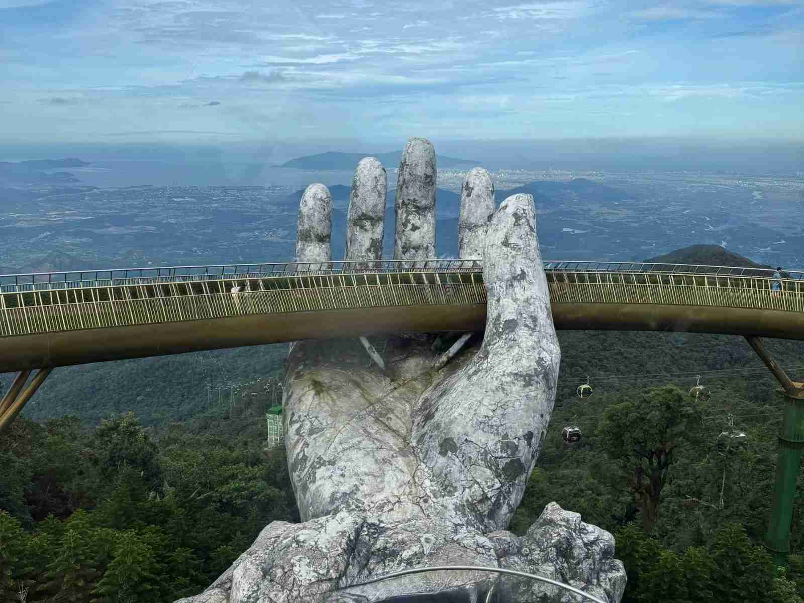 Nasleduje výstup k Zlatému mostu (Golden Bridge) v Ba Na Hills, ktorý akoby v oblakoch držali obrovské kamenné ruky.