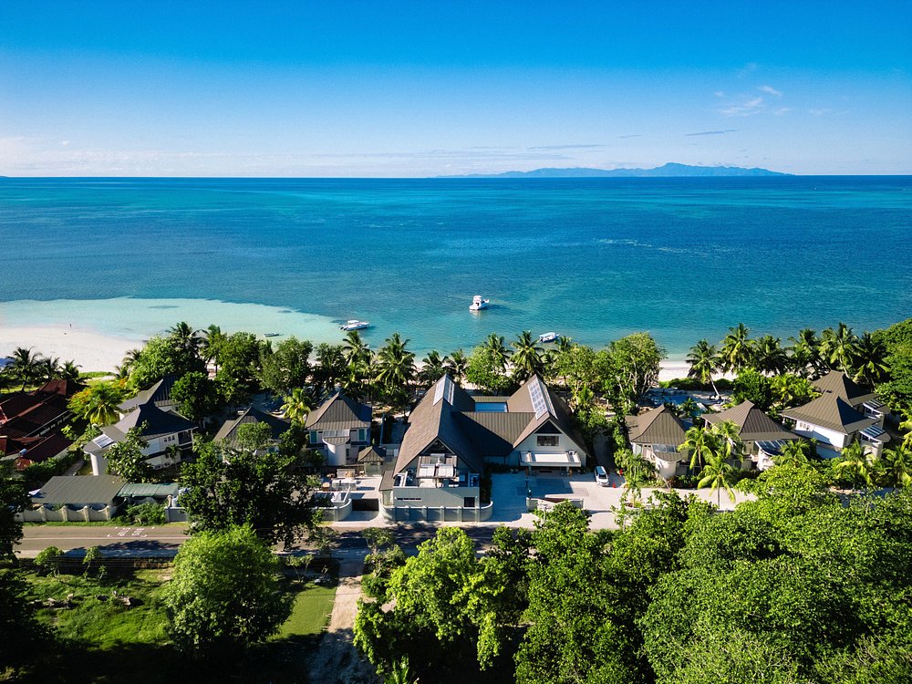ponúka hosťom každý večer krásne výhľady na západ slnka. Od letiska Praslin je vzdialený len približne 5 minút jazdy a od prístavu Baie Ste Anne, kam prichádzajú trajekty z Mahé,