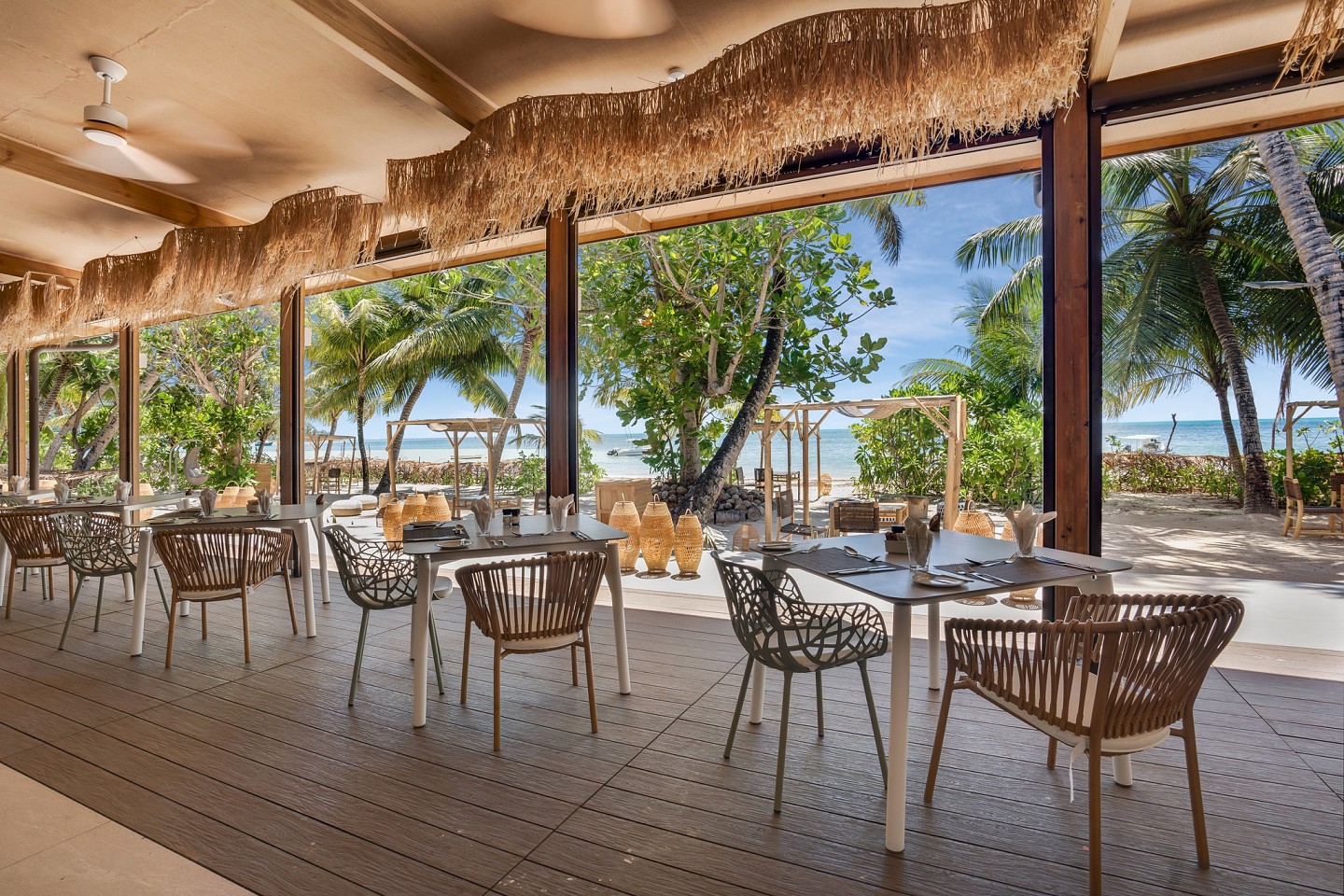 Indian Ocean Lodge, Grand Anse má centrálny pavilón s vysokými stropmi, v ktorom sa nachádza recepcia s nepretržitou prevádzkou a službami concierge, ktoré zahŕňajú pomoc