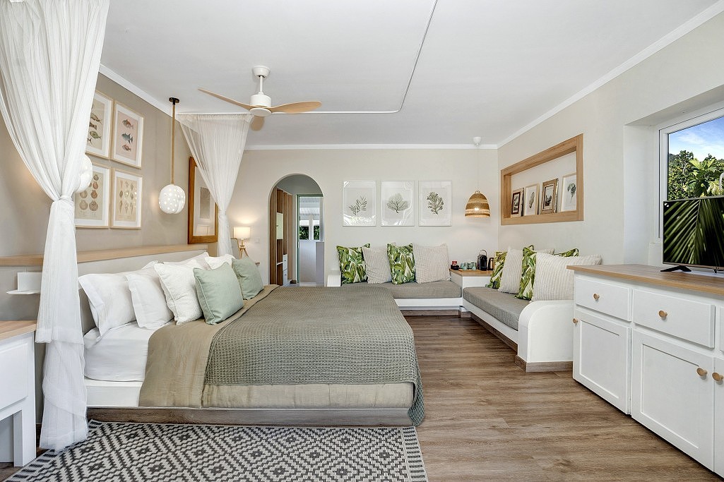 kuchyne, nezabudnuteľných západov slnka na pláži Grand Anse a skvelej dostupnosti k unikátom ostrova. Bezplatný shuttle bus na svetoznámu pláž Anse Lazio je vynikajúcim bonusom,
