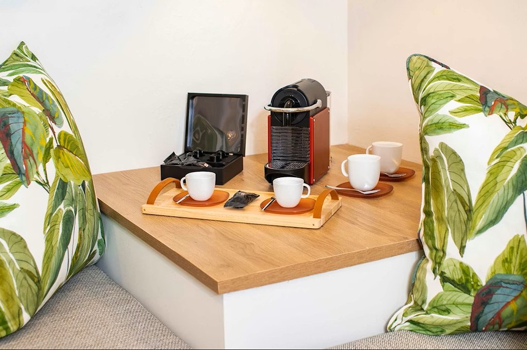 minichladnička, telefón, set na prípravu kávy a čaju a kúpeľňa so sprchou, sušičom na vlasy a toaletou. Každá izba disponuje vlastnou súkromnou terasou alebo balkónom