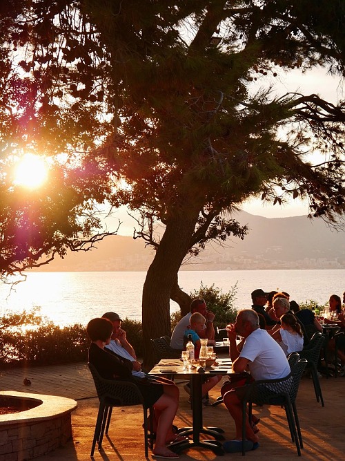 Grilovanie na terase s výhľadom na záliv Ajaccio.