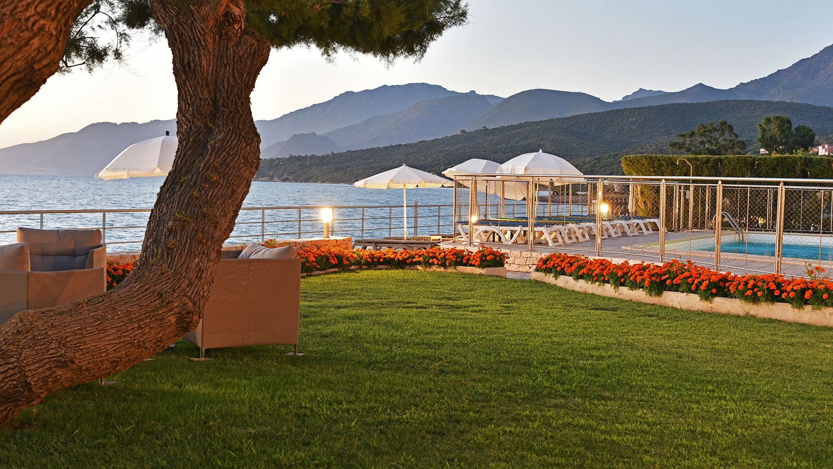 otel Tettola má vynikajúcu polohu priamo pri mori, v tichej časti zálivu Saint-Florent. Hotelová záhrada plynule prechádza až k pláži, takže k moru je to doslova