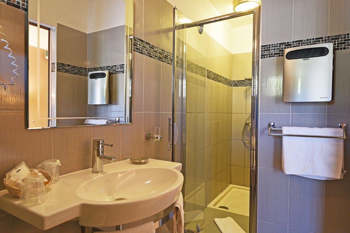 - Standard/ výhľad ulica – cca 16 m2, pre max 2 osoby má manželskú posteľ alebo 2 samostatné lôžka, podľa preferencií, kúpeľňu s WC. Izby sú bez balkóna alebo na 1. poschodí majú balkón s výhľadom do ulice.