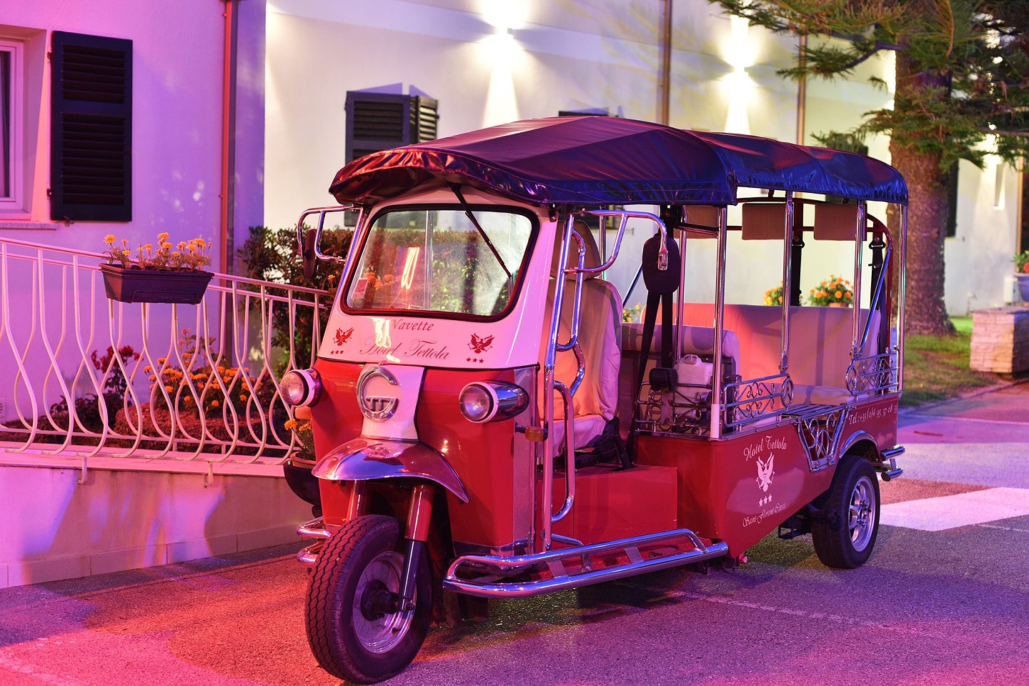 Bezplatný hotelový transfer " Tuk -tuk" do centra mesta Saint - Florent.