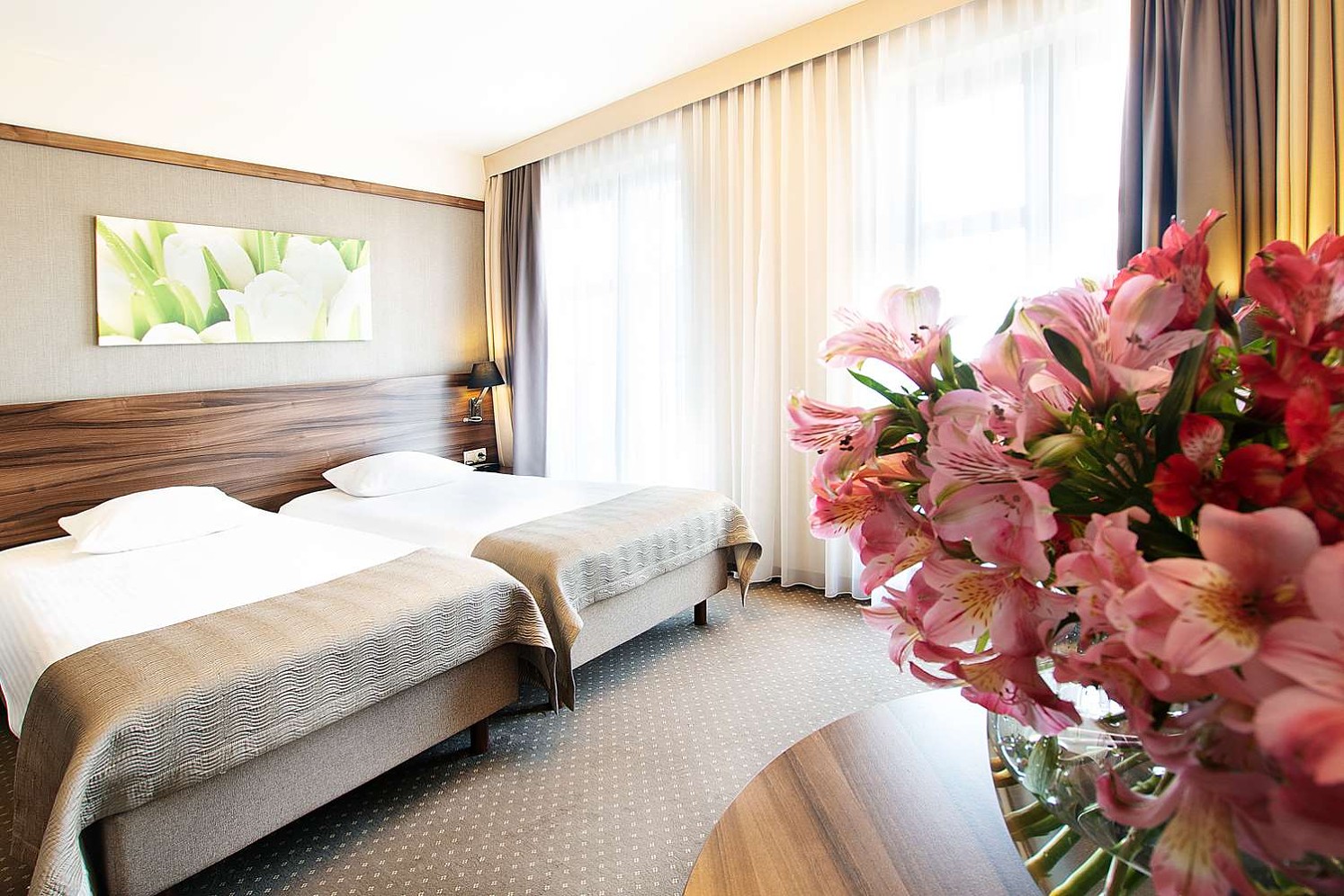 Celkom 87 elegantne zariadených izieb rôznych typov má kúpeľňu so sprchoua WC, sušič na vlasy, klimatizáciu, flat TV, telefón, trezor a wifi. V dvojlôžkových izbách možnosť 1 prístelky alebo detskej postieľky.