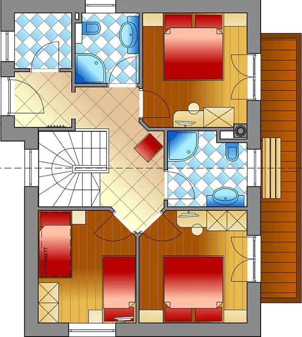 - Chata Hochalmspitz – asi 130 m2, obývacia miestnosť s otvoreným podkrovím,