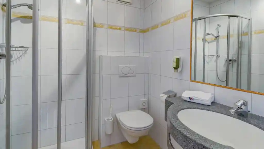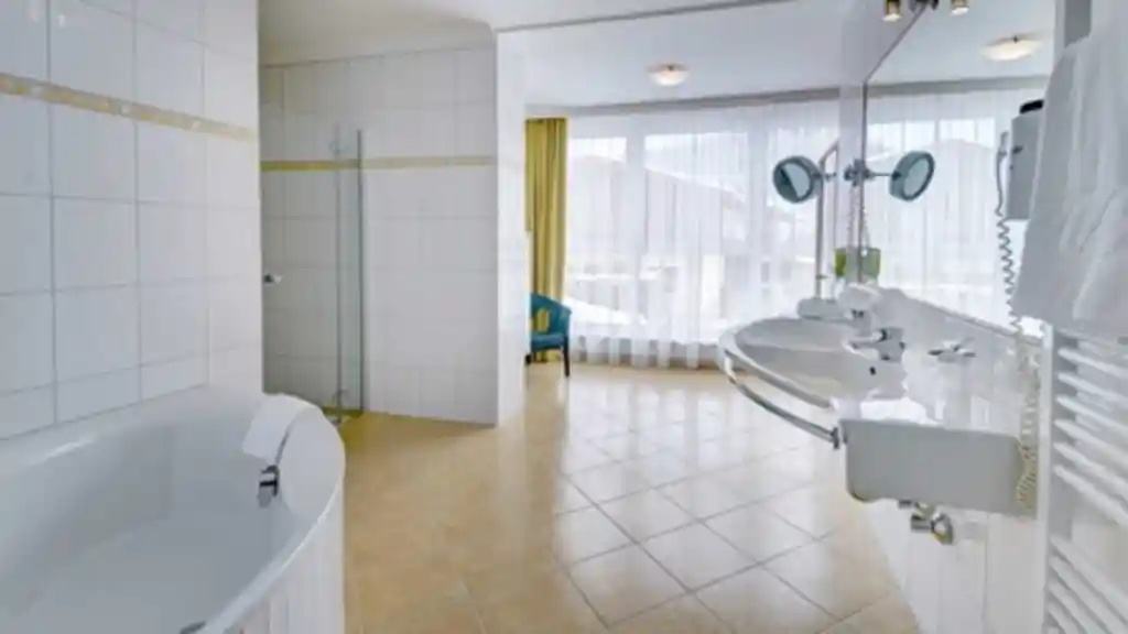 Prevažne v tradičnom štýle zariadené izby majú kúpeľňu so sprchou alebo vaňou a WC (niekde oddelené od kúpeľne),