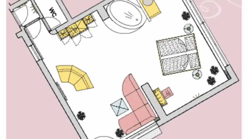 - Suita Kristall – asi 39m2, pre 2-4 osoby, suita s oddelenou spálňou a obývacou
