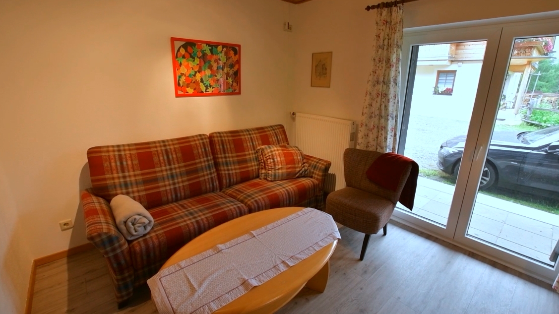 - Apartmán pre 7 osôb – má spálňu s manželskou posteľou a samostatným lôžkom, spálňu s poschodovou posteľou a samostatným lôžkom, obývaciu miestnosť s jedálenským stolom a krbom, kuchynský kútik, kúpeľňu so sprchou a WC.