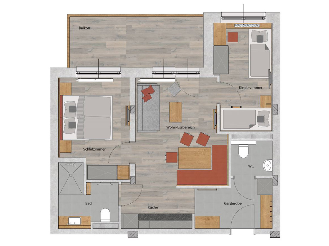 - Dvojlôžková izba Hochwurzen – pre 2-5 osôb, asi 32m22, nová izba, má aj kútik s posedením