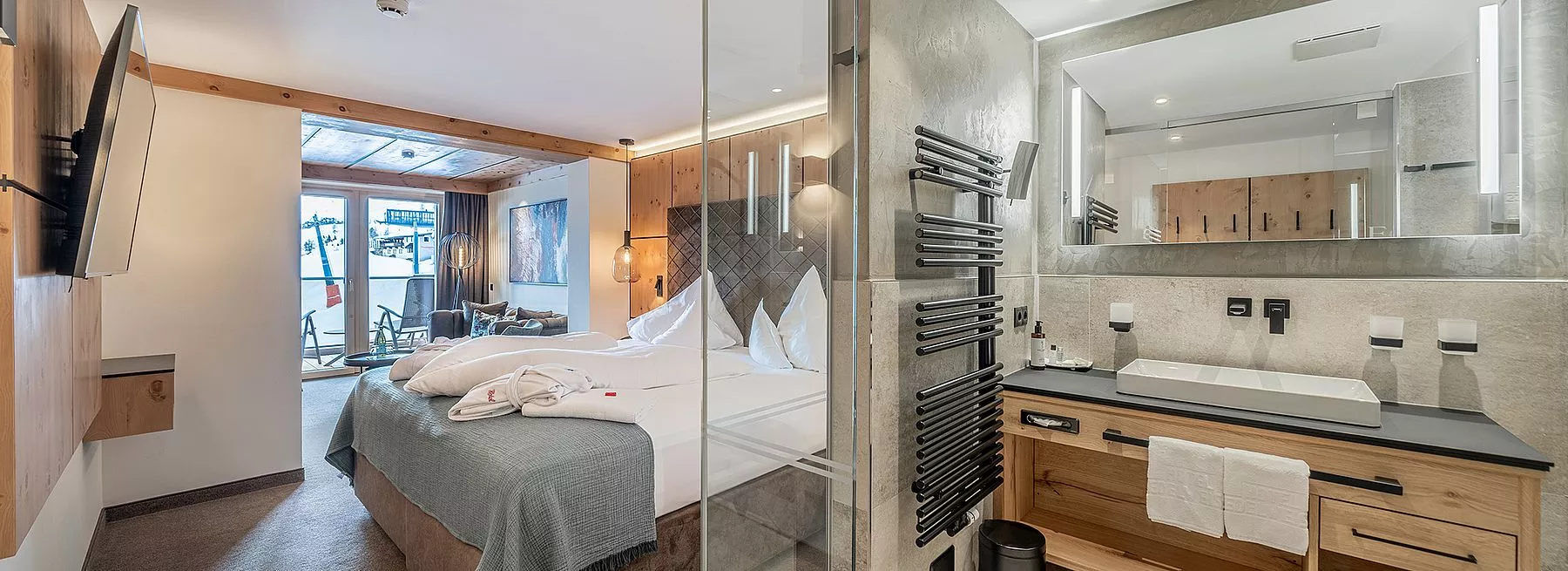 - Dvojlôžková izba Deluxe Gaislachkogel – asi 36m2, samostatné WC, obývacia èas,