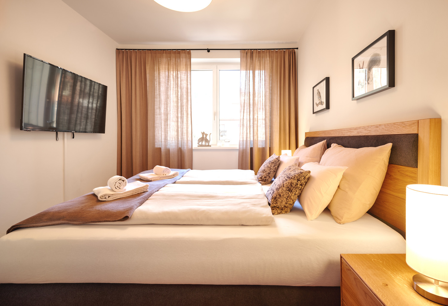 K dispozícii rôzny typy apartmánov, všetky sú komfortne zariadené, majú vlastný kompletne vybavený kuchynský kút - varná doska, rúra, chladnička, mraznička, umývačka riadu, rýchlovarná kanvica,