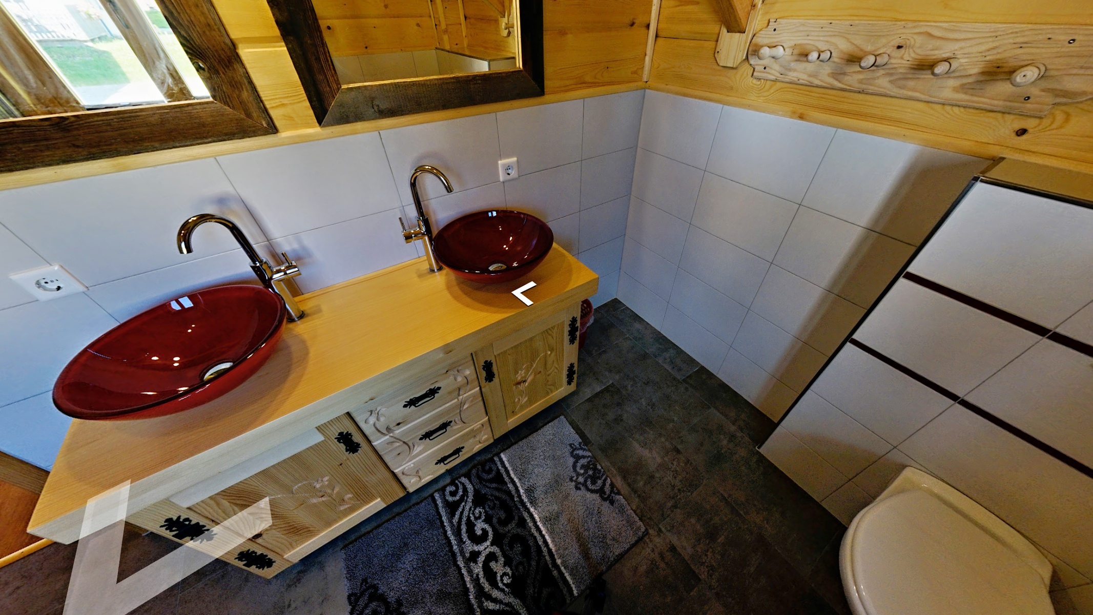 2 umývadlami a saunou pre 3 osoby, samostatné WC.