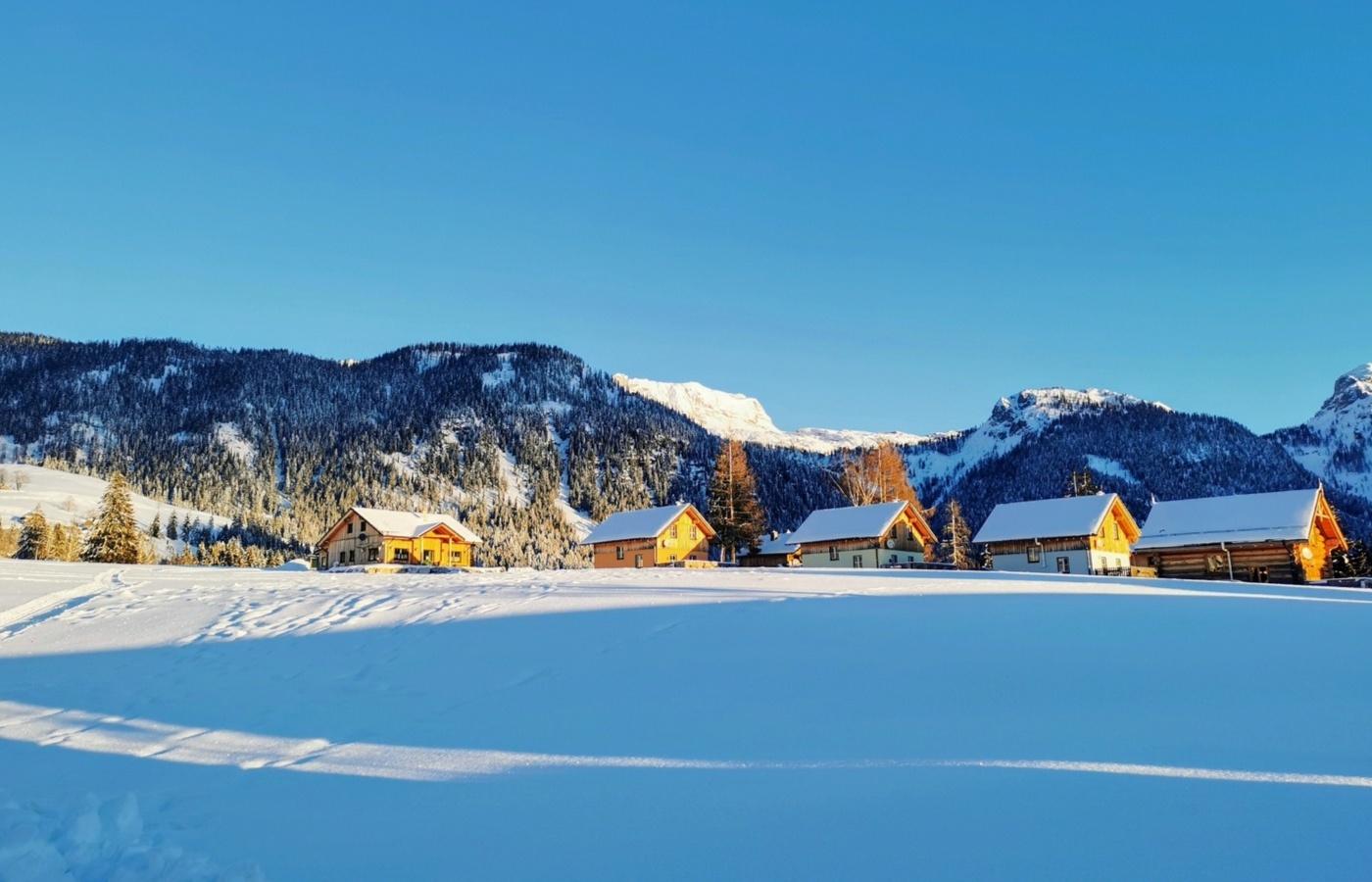krížom cez lúku ku chatám. Trať pre bežky Freiberg je len 80-150 m od chát.