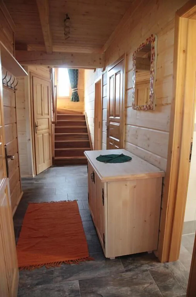 Kúpeľňa so sprchou, umývadlom a saunou pre 4-5 osôb a vstupom von, kde sa môžete v zime ochladiť v snehu. Samostatné WC,