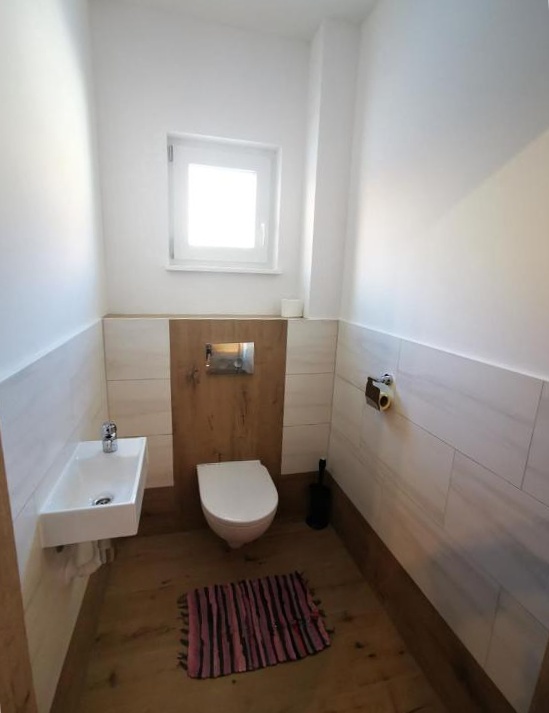 dole a 1 hore. Kúpeľňa so sprchou, umývadlom a infračervenou kabínou pre 2 osoby. Samostatné WC, sklad