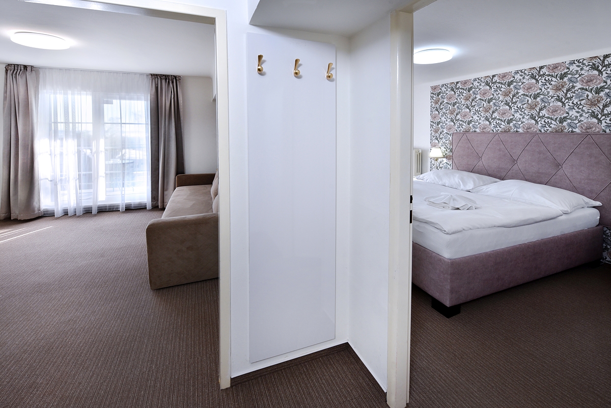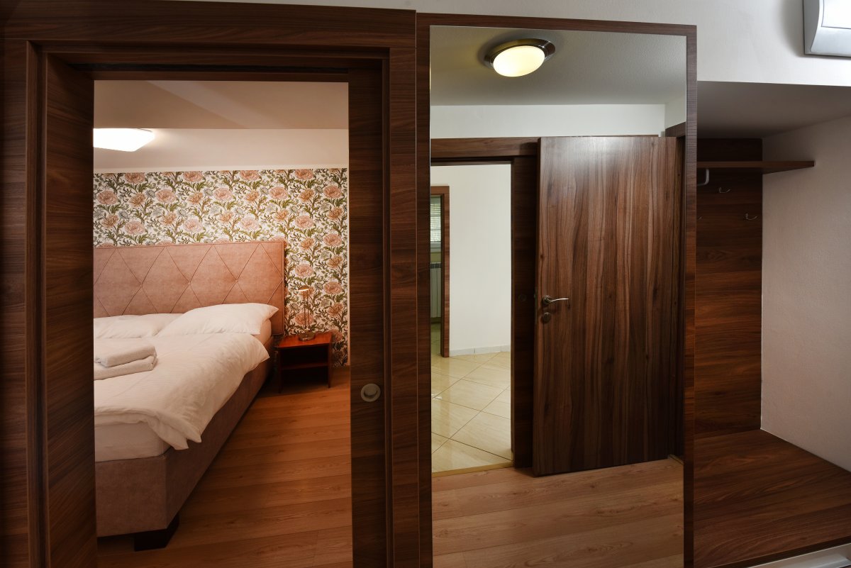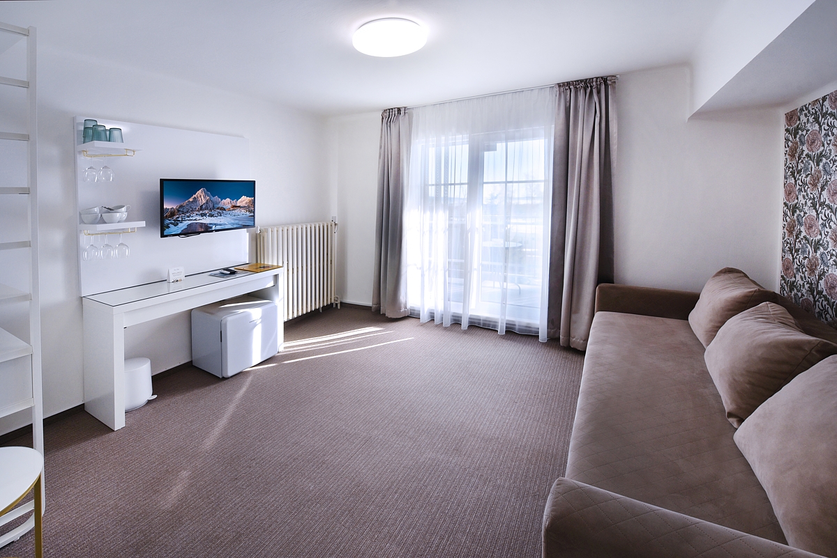 - Apartmán BILO 6 – asi 35 m2 – pre max. 4-6 osôb - obývacia miestnosť s posedením, písacím stolíkom, stoličkou, TV, jednolôžkovým gaučom a rozkladacím dvojlôžkovým gaučom + spálňa s manželskou posteľou a jedným lôžkom.