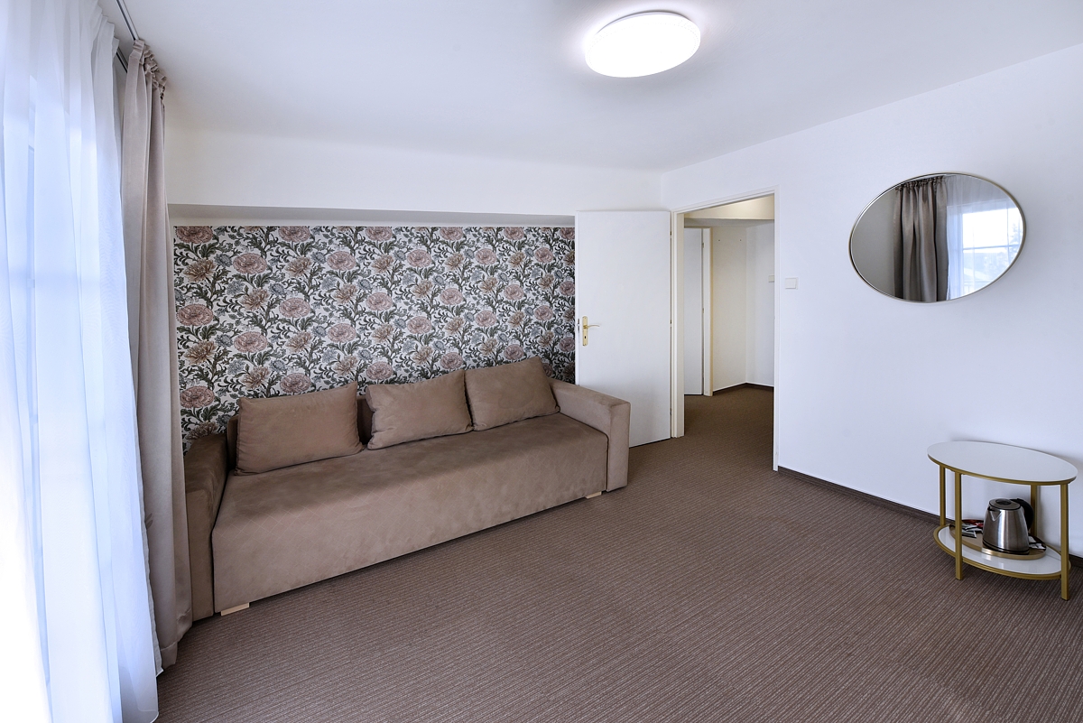 - Apartmán BILO 5 – asi 25 m2 – pre max. 3-5 osôb - obývacia miestnosť s posedením, písacím stolíkom, stoličkou, TV, jednolôžkovým gaučom a rozkladacím dvojlôžkovým gaučom + spálňa s manželskou posteľou.