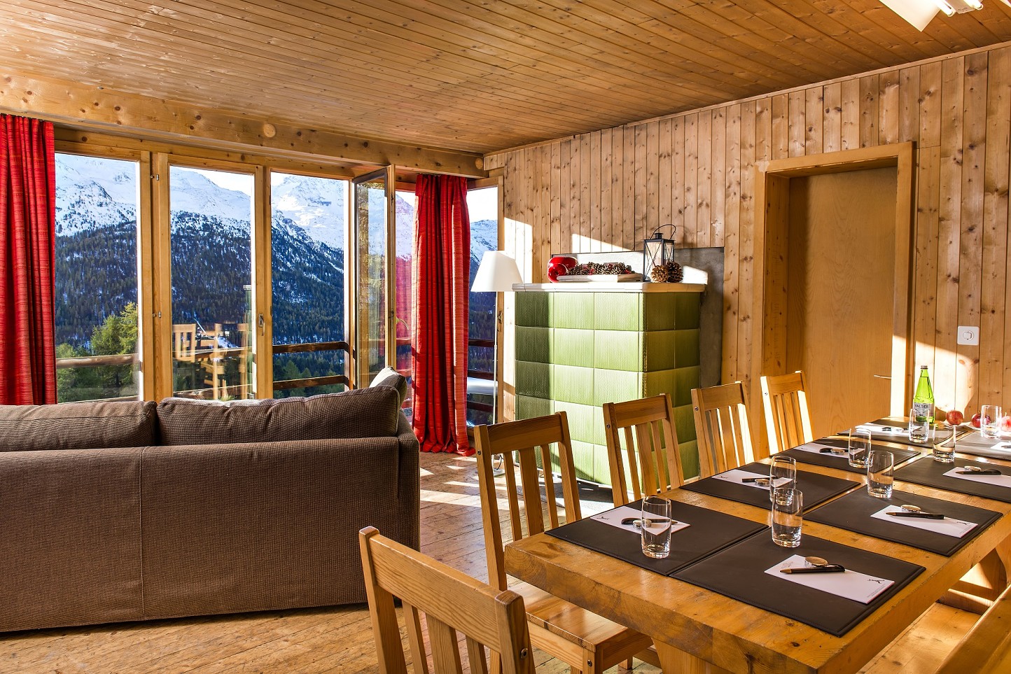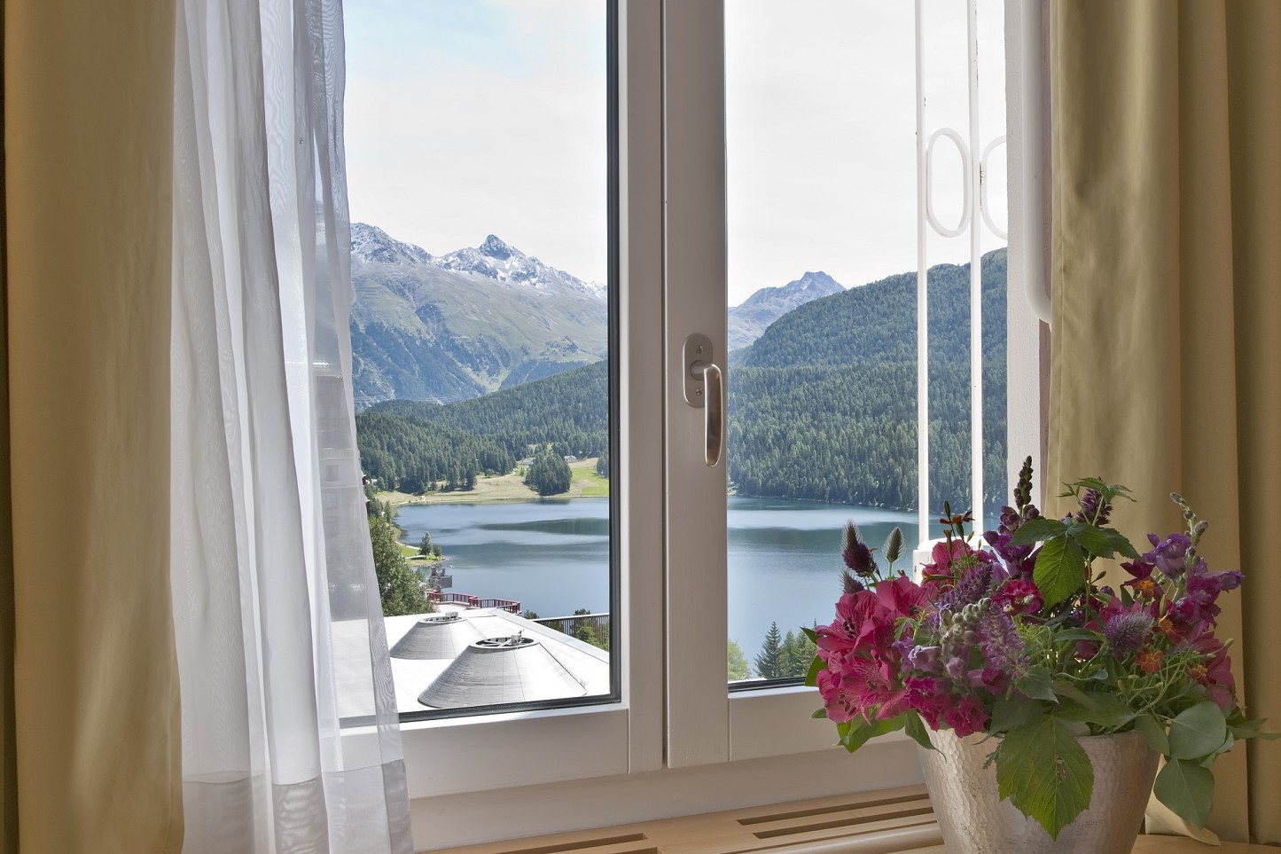 - Panorama izba Rosatsch – izby s ikonickým výhľadom na jazero St. Moritz a južným balkónom