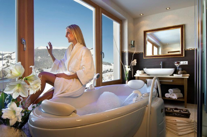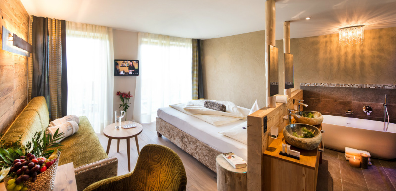 - Suita Romantic Lifestyle – suita pre 2 - 4 osoby má manželskú posteľ, pohovku, otvorená kúpeľňa s vírivou vaňou a dažďovou sprchou. Balkón s výhľadom na Sciliar.