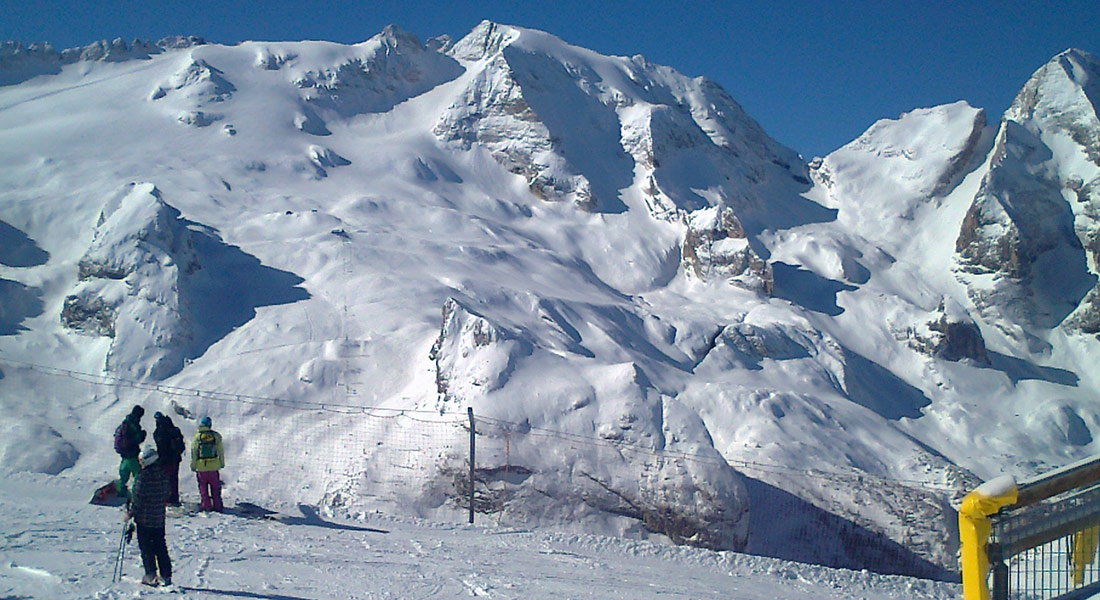 Sella Rondy aj na ľadovec Marmolada. Odporúčame celoplošné skipasy Dolomiti Superski.