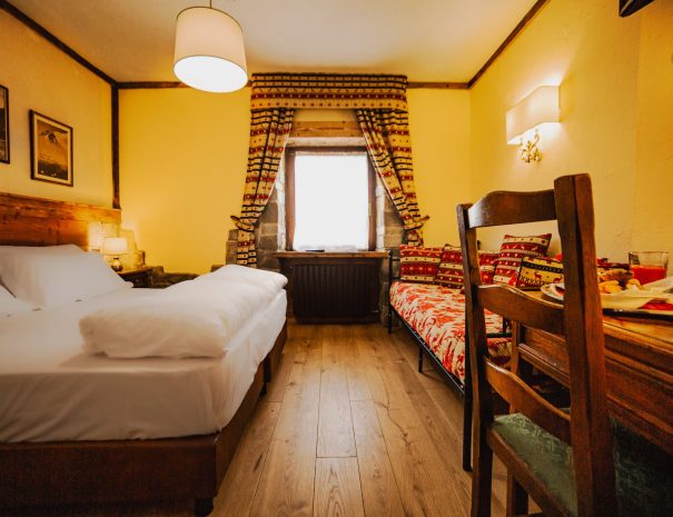 - Trojlôžková izba Standard – asi 22 m2, zvukotesné okná, výhľad na Matterhorn, možnosť prístelky pre 4. osobu na vyžiadanie