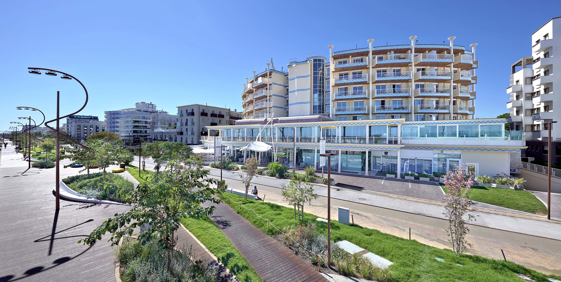 **** / Elegantný hotel s kvalitnými službami, výborná poloha oproti pláži, pri pešej promenáde a neďaleko centra. Bazény, wellnes spa s výhľadom na more, chutné bohaté raňajky. Vhodný i pre rodiny s deťmi. Meeting & Business Center pre konferencie a firemné stretnutia, kapacita 350 osôb.