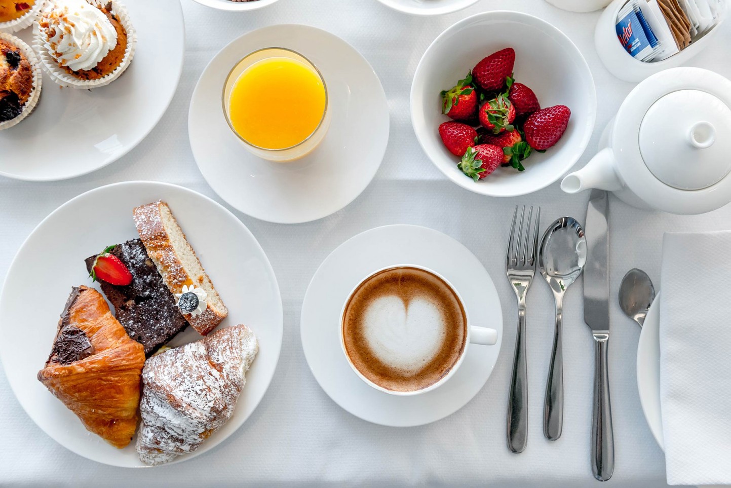 Raňajky formou bohatého bufetu z čerstvých miestnych produktov. Slané i sladké (vrátane bezlepkových) bio a čerstvé ovocie a zelenina, domáce zákusky, koláčiky, miestne salámy a syry. Podávané sú od 7:00 – 10:00 hod. Možnosť donášky raňajok na izbu.