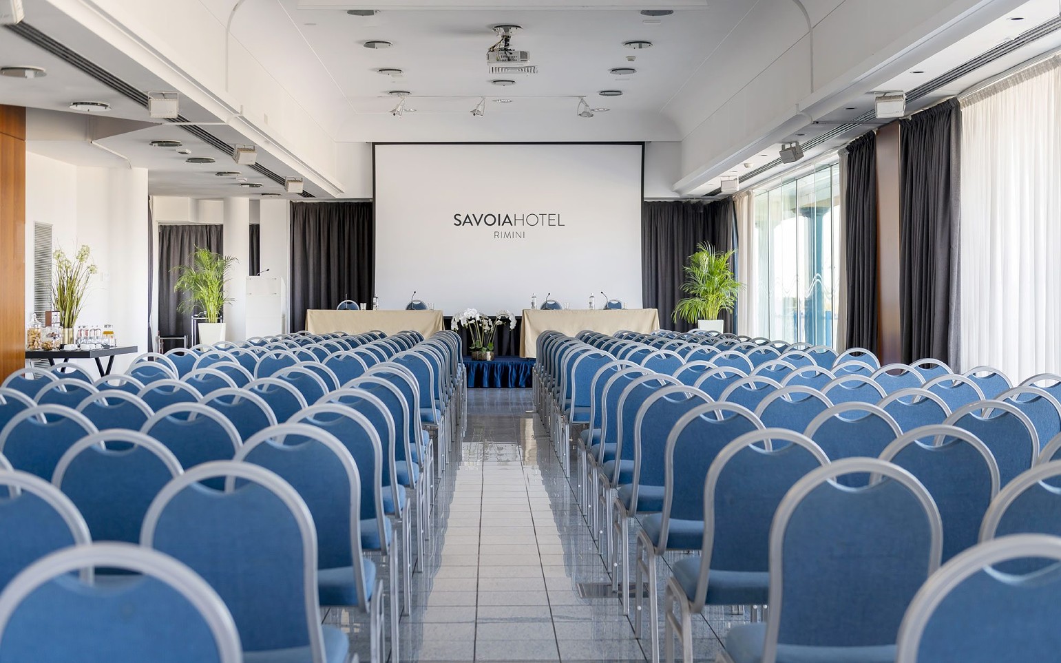 Konferenčné centrum pre kongresy a firemné podujatia. Občerstvenie zabezpečuje personál kuchyne AmoRimini. Všetko podľa objednávky pripravené na mieru. Kapacita 350 osôb.