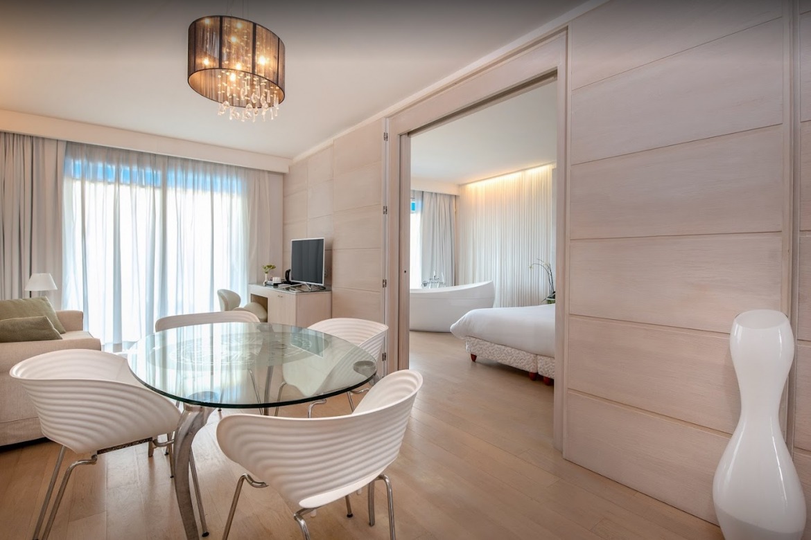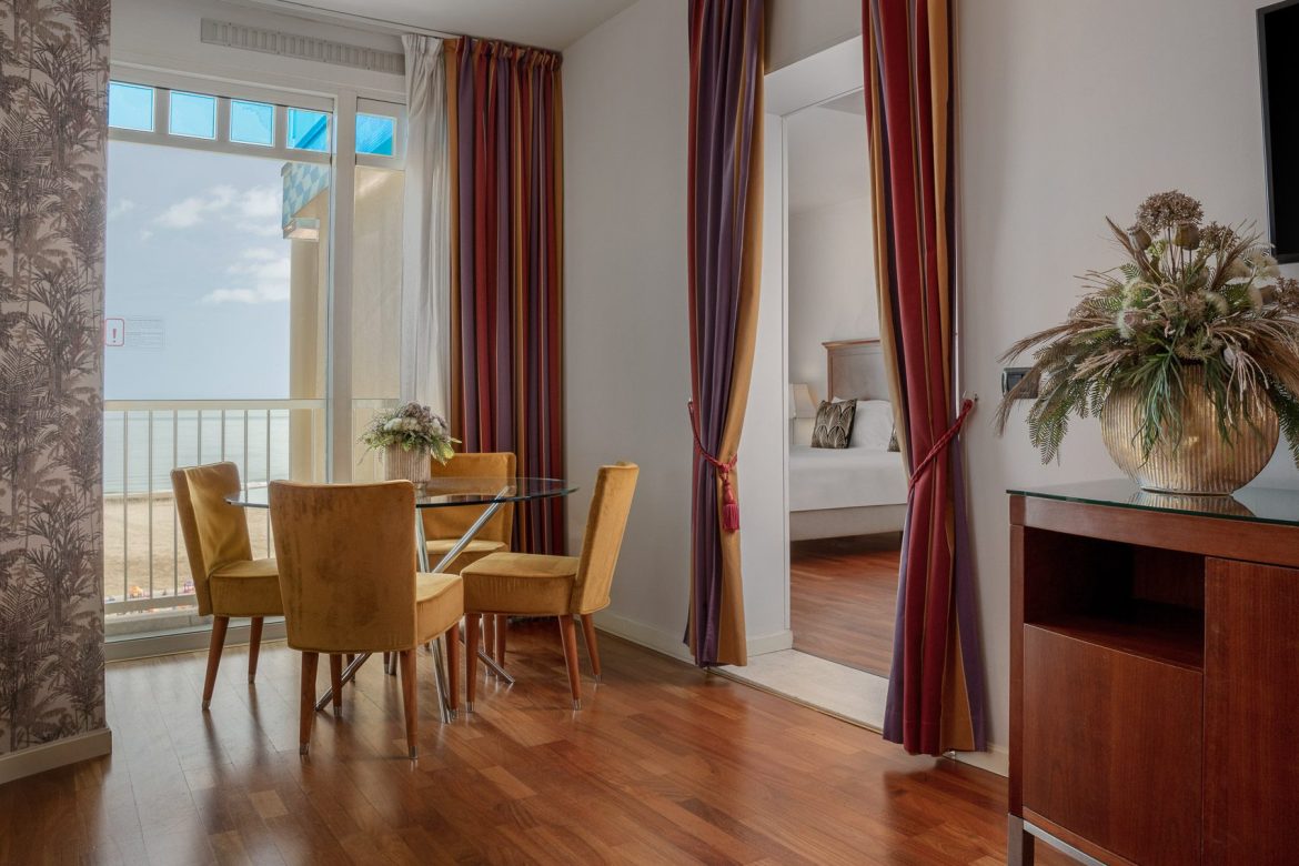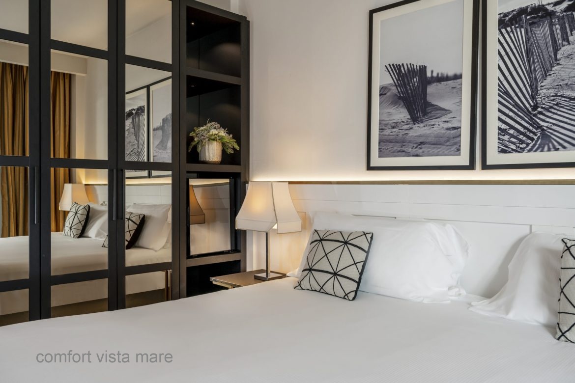 - Suita Executive – asi 82 m2 – apartmán má 70 m2 a balkón 12 m2, nachádza sa na najvyššom poschodí hotela, má 2 kúpeľne a chromoterapeutické sprchy, veľký balkón so stolom a stoličkami, výhľad na more. V spálni je aj vaňa s výhľadom na more na relaxačný kúpeľ.