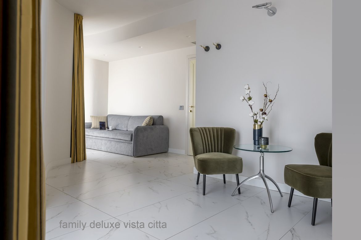 - Suita Malatesta – asi 64 m2 – apartmán pozostáva z dvoch samostatných miestností, s jedným spoločným vchodom - má 52 m2 a balkón 12 m2, morská strana.