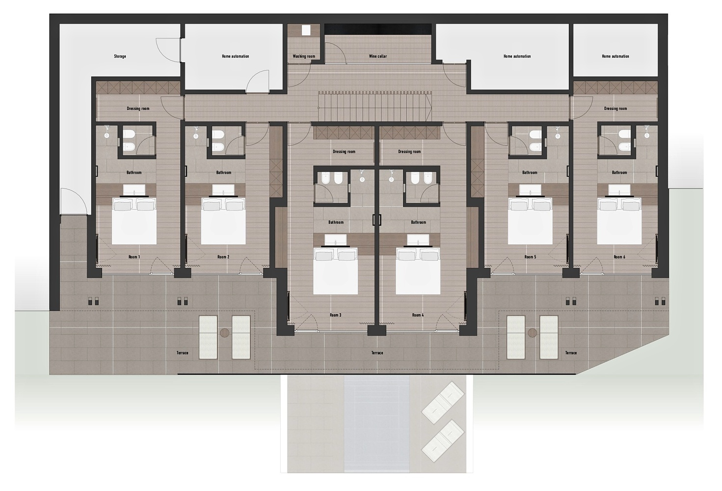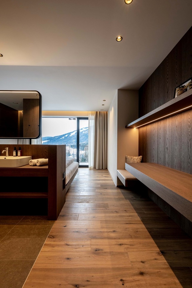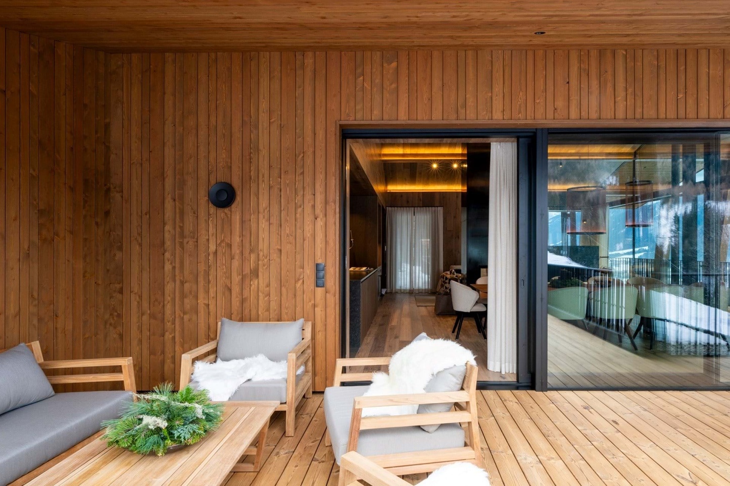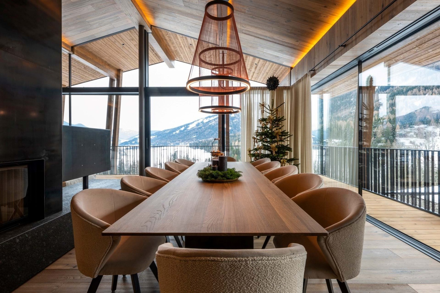 ***** / Luxusný chalet pre 12 osôb, so 6 spálňami, wellness zónou s vyhrievaným bazénom aj domácim kinom, asi 900m od zjazdovky strediska Kronplatz.