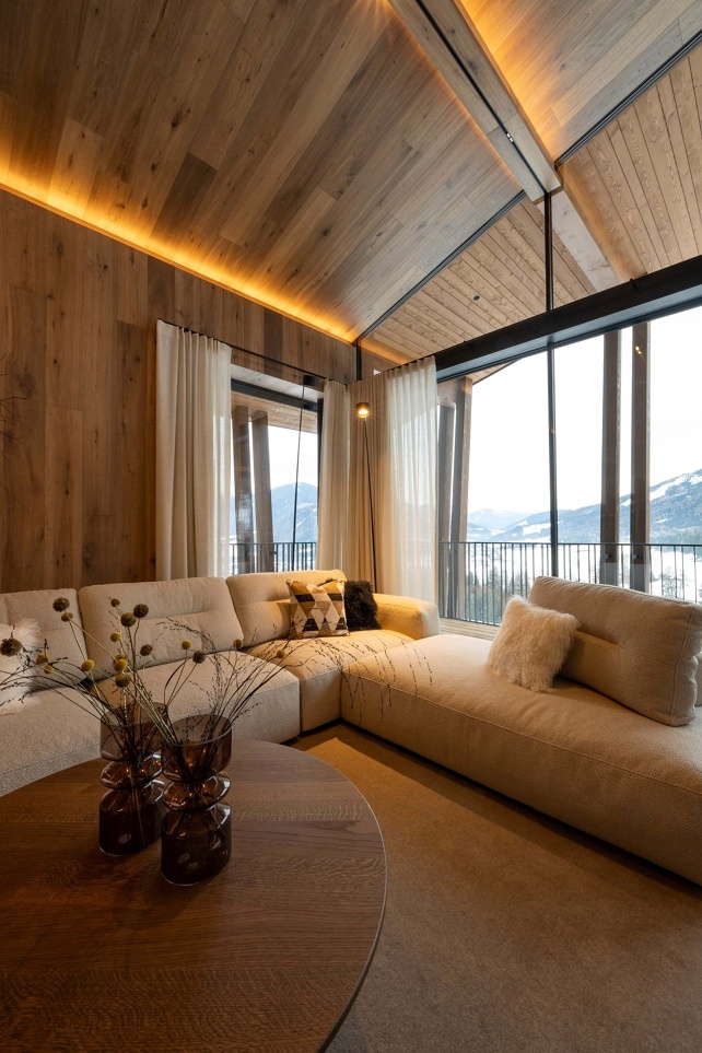 a panoramatický výhľad, veľkú otvorenú kuchyňu s jedálenskou zónou, prepojenú priestrannú obývaciu zónu s vysokým stropom,