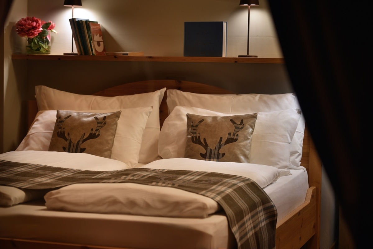 - Mountain Suita – asi 35 m2, pre 3 osoby má hlavnú spálňu s manželskou posteľou a vaňou, ďalšia spálňa s posteľou queen size, kúpeľňa so senzorickou sprchou a WC.