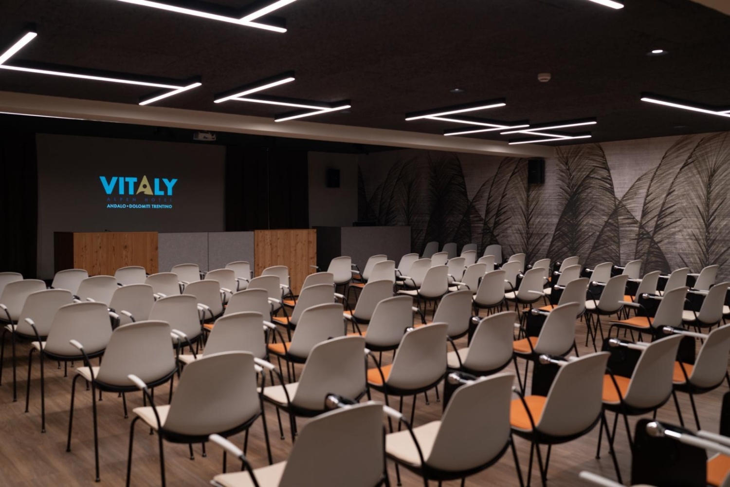 Konferenčná miestnosť s kapacitou 110 osôb vybavená ozvučením BOSE, wifi, projektorom a salónikom na prestávky na kávu.