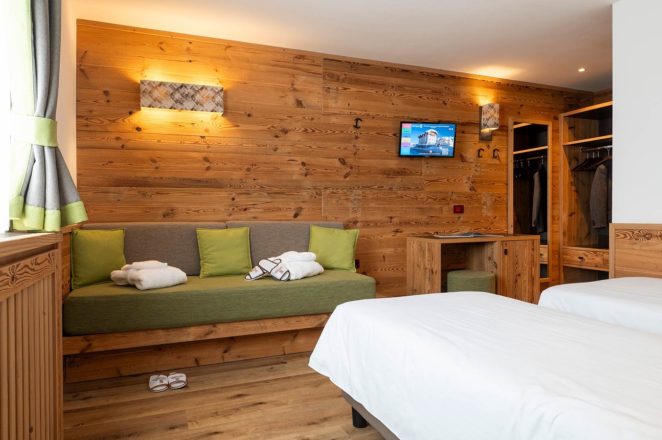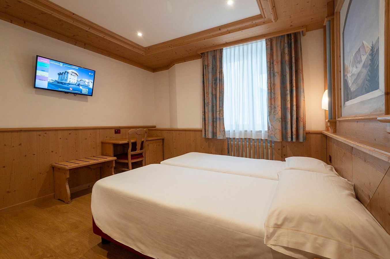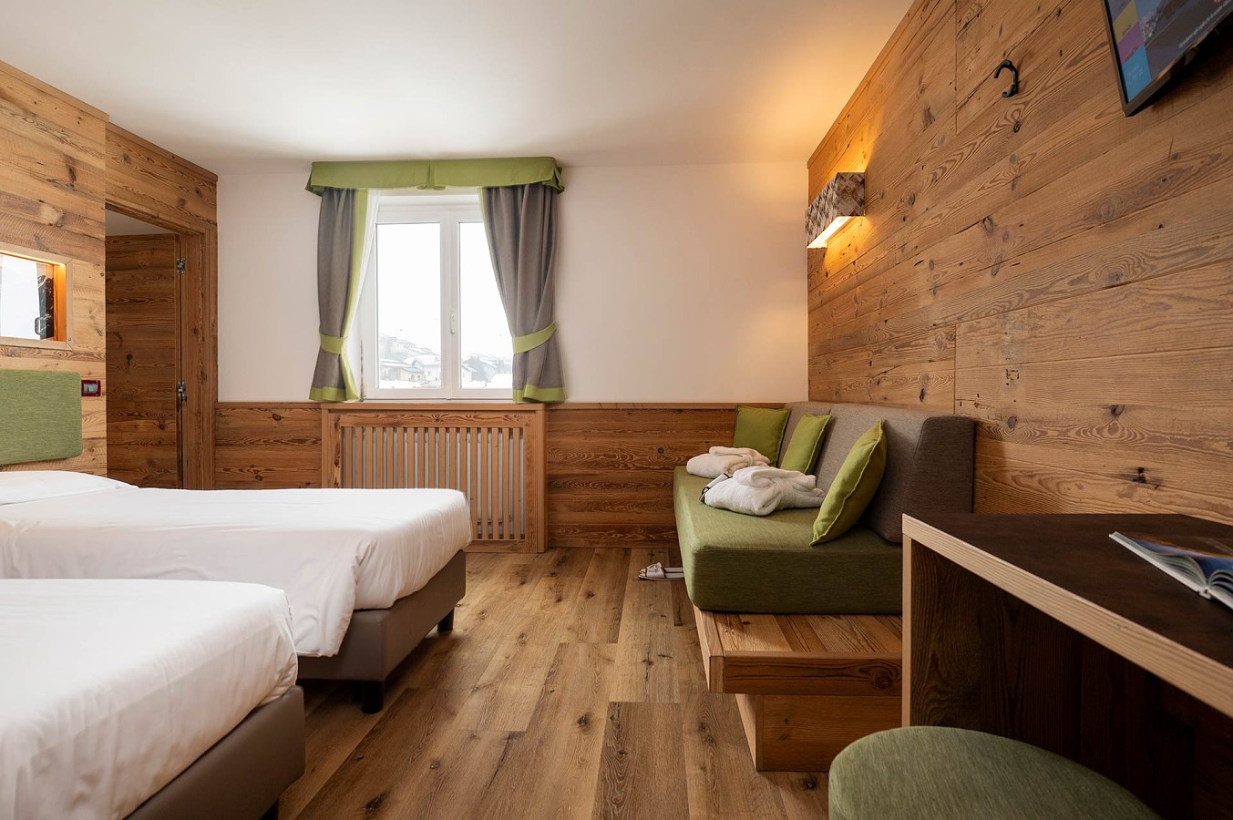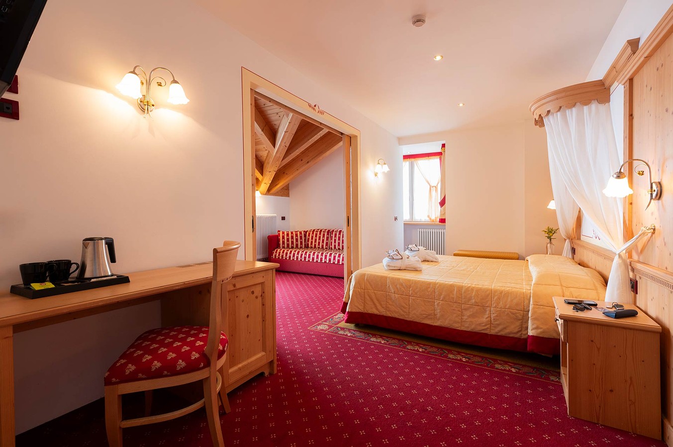 **** / Príjemný rodinne priateľský hotel s bazénom a wellness zónou v centre Tonale, hneď oproti lyžiarskym svahom a vlekom.