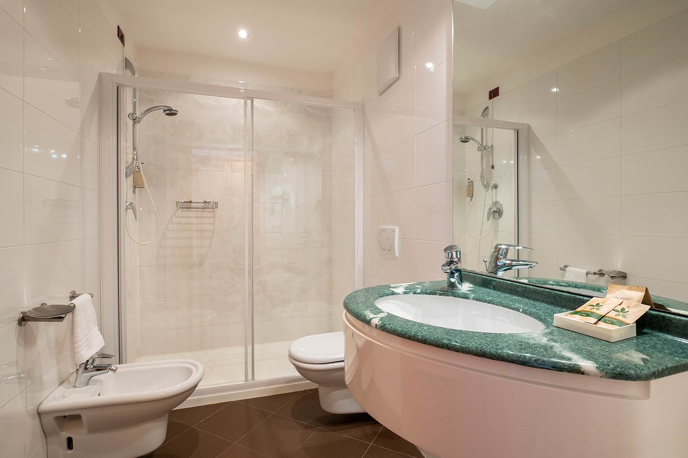 Dvojlôžkové izby s možnosťou až 2 prísteliek majú kúpeľňu so sprchou alebo vaňou a WC, TV, telefón, trezor a minibar