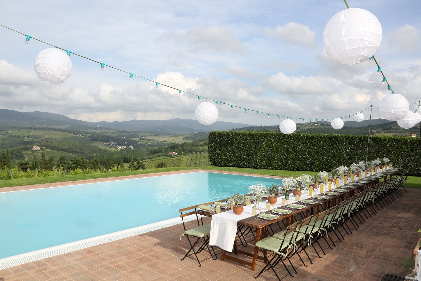 Vonkajší bazén 12 x 6 m s ležadlami a slnečníkmi otvorený od mája do októbra. Požičovňa bicyklov priamo v usadlosti.