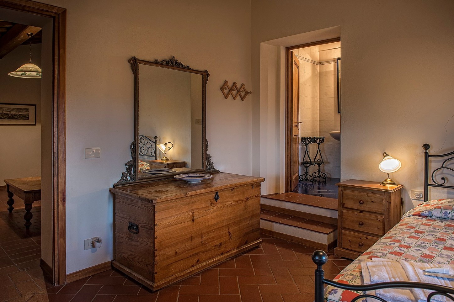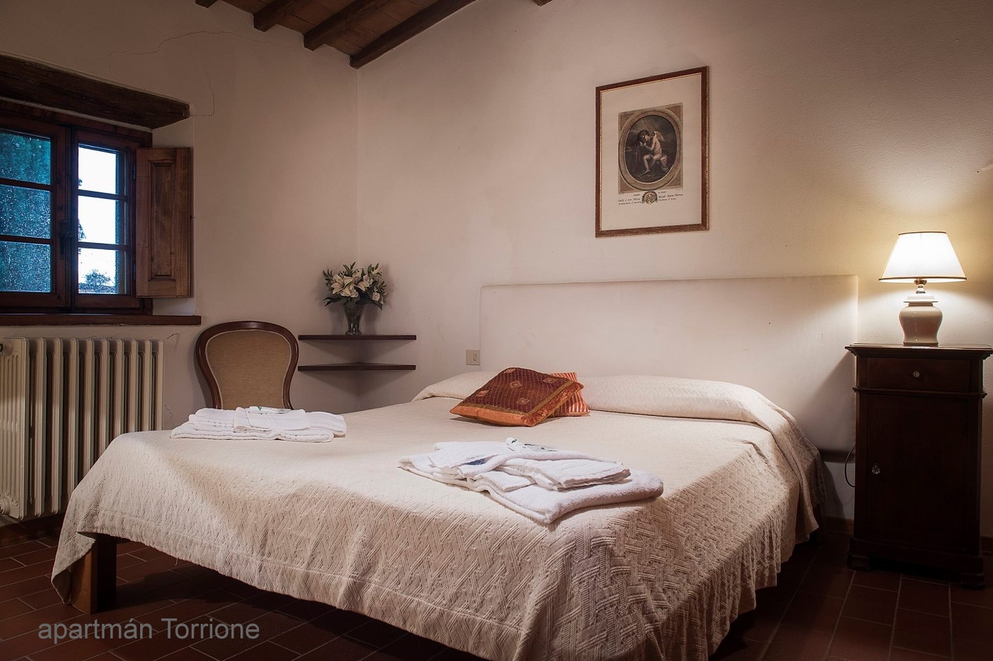 K dispozícii celkom 6 vkusne zariadených apartmánov v toskánskom štýle - priznané trámy, terakotová dlažba, všetky majú kúpeľňu so sprchou a WC, plne vybavenú kuchyňu a vlastn vchod.