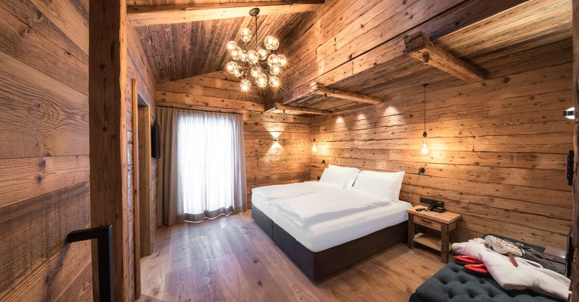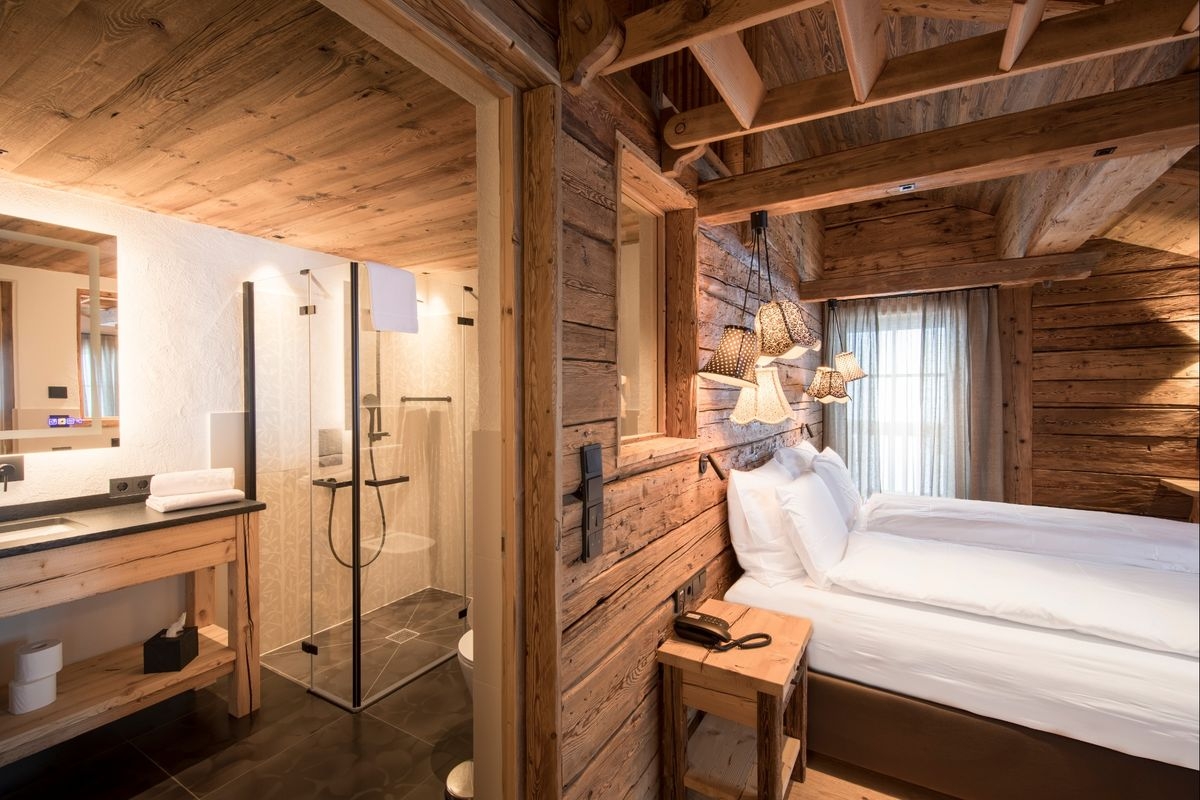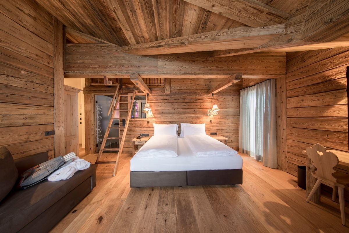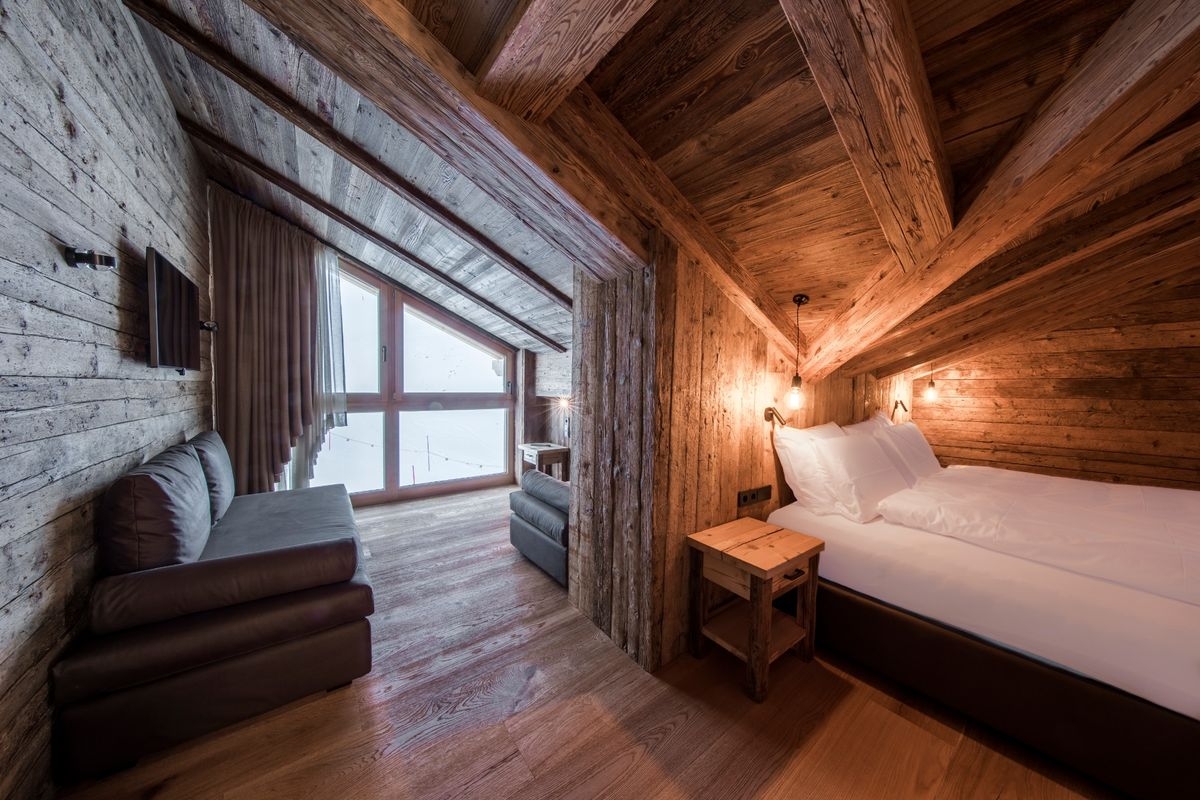 - Deluxe – asi 30 m2, pre 2 - 3 osoby majú manželskú posteľ, v niektorých izbách otvorené poschodie (mezanín) s možnosťou ubytovania 3. osoby, kúpeľňu so sprchovacím kútom, minibar, balkón s výhľadom na Dolomity.
