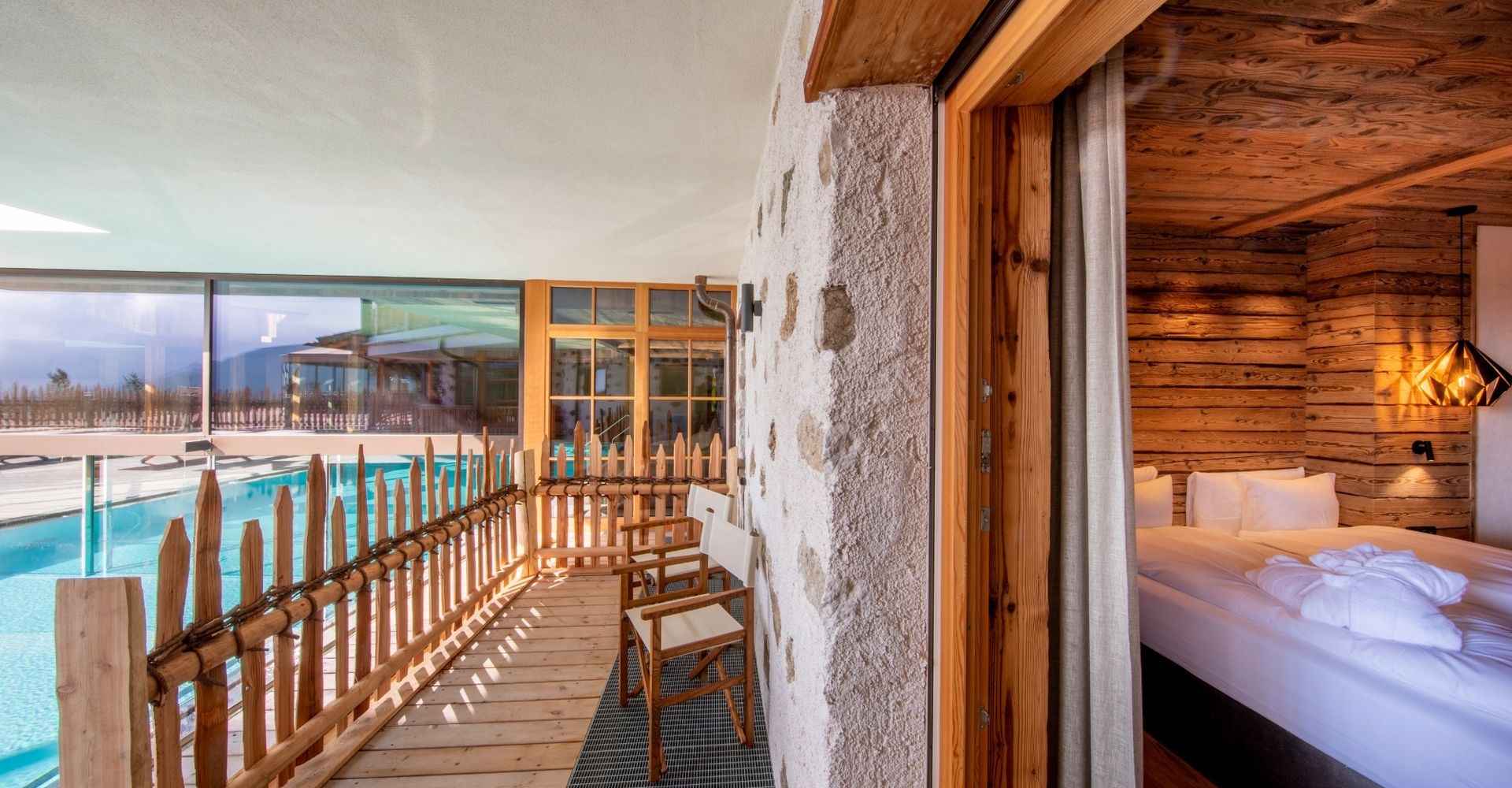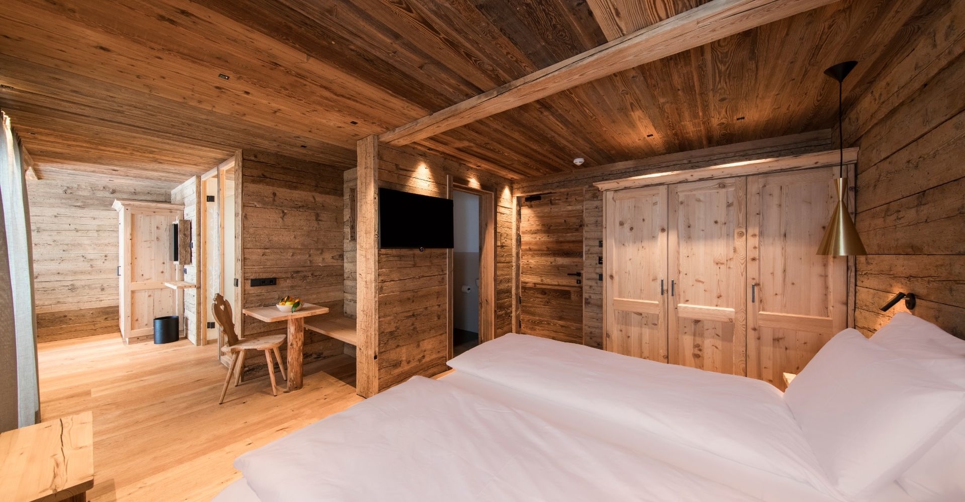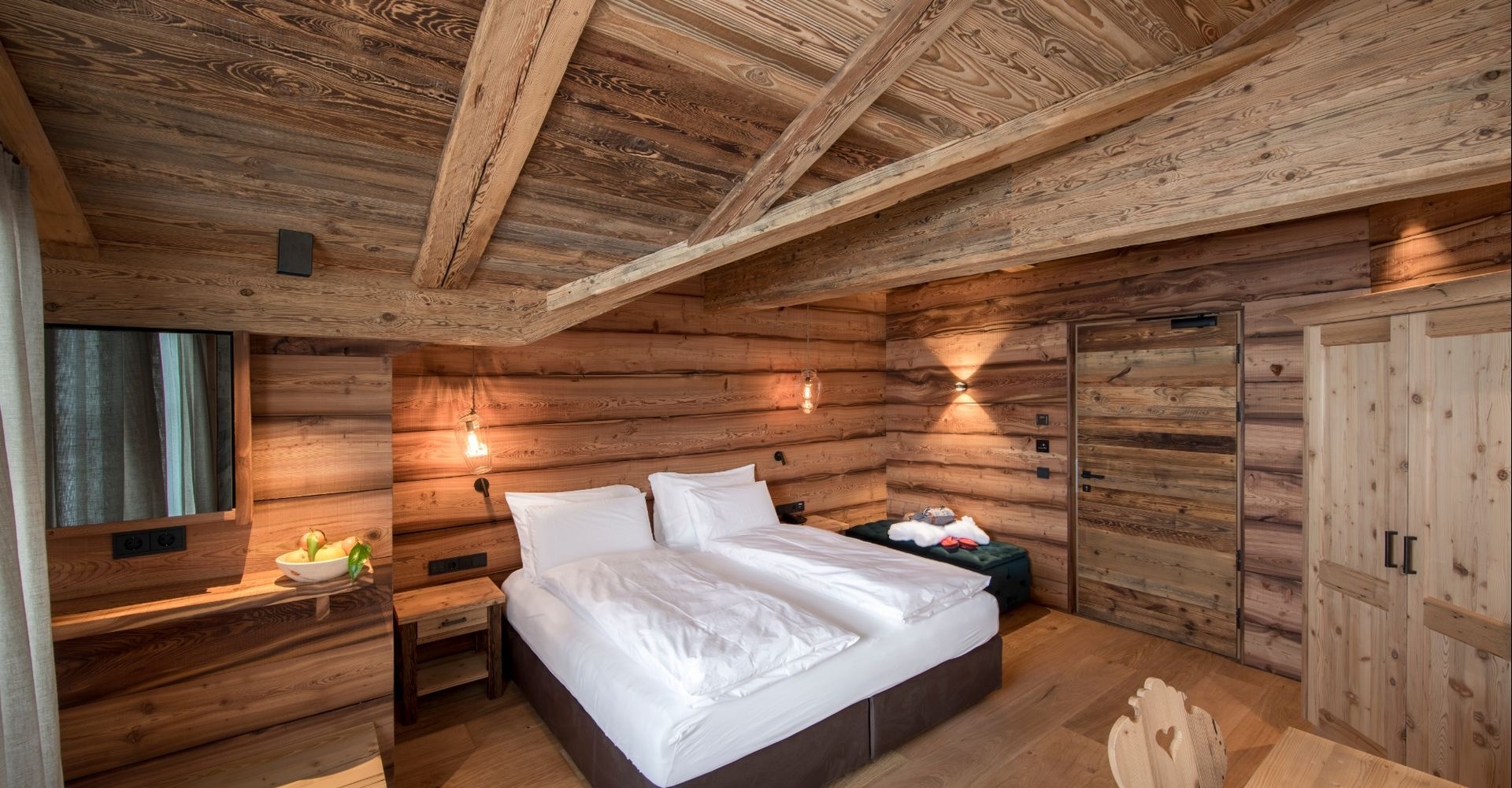 - Deluxe – asi 30 m2, pre 2 - 3 osoby majú manželskú posteľ, v niektorých izbách otvorené poschodie (mezanín) s možnosťou ubytovania 3. osoby, kúpeľňu so sprchovacím kútom, minibar, balkón s výhľadom na Dolomity.