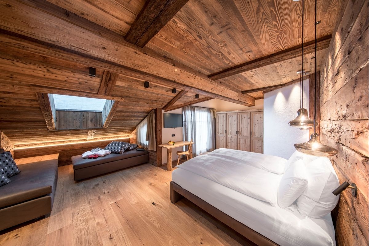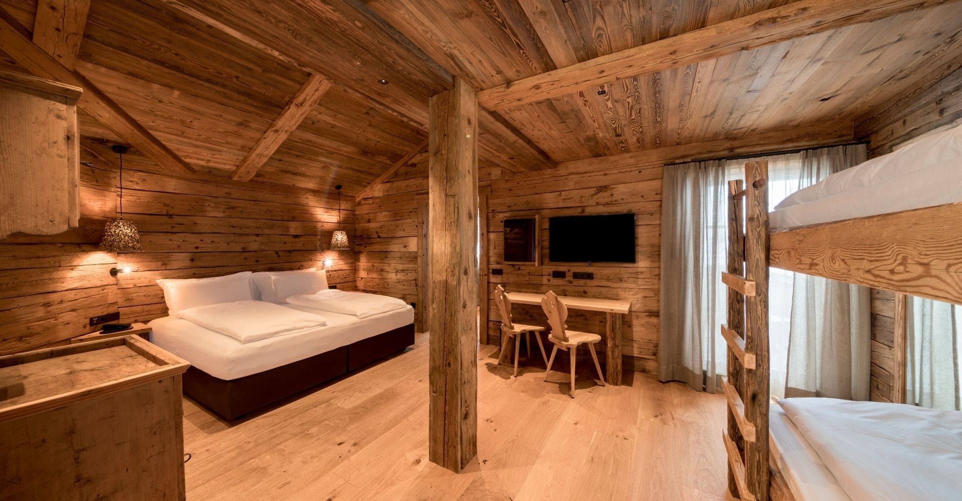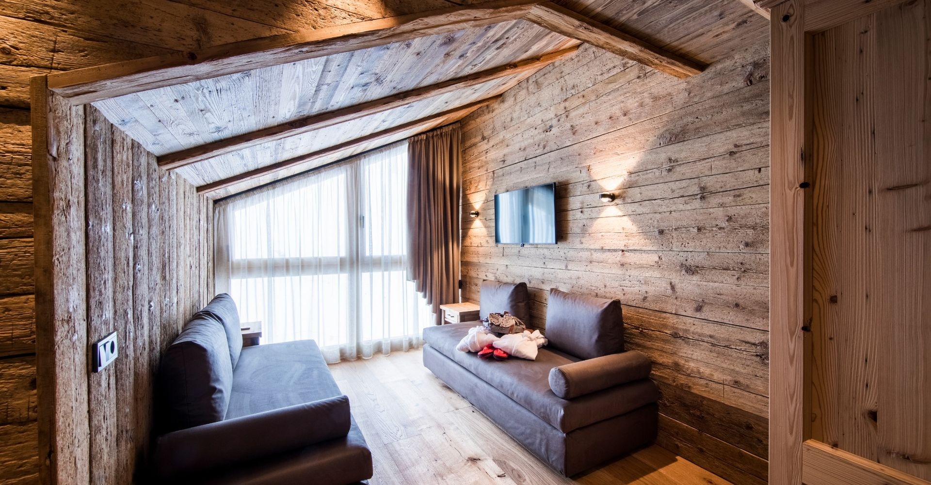 - Junior Suita – asi 40 m2, pre 2 - 4 osoby majú spálňu s manželskou posteľou a poschodovú posteľ alebo 2 samostatné lôžka, obývaciu časť s posedením kúpeľňu so sprchovacím kútom, minibar, balkón s výhľadom na Dolomity.